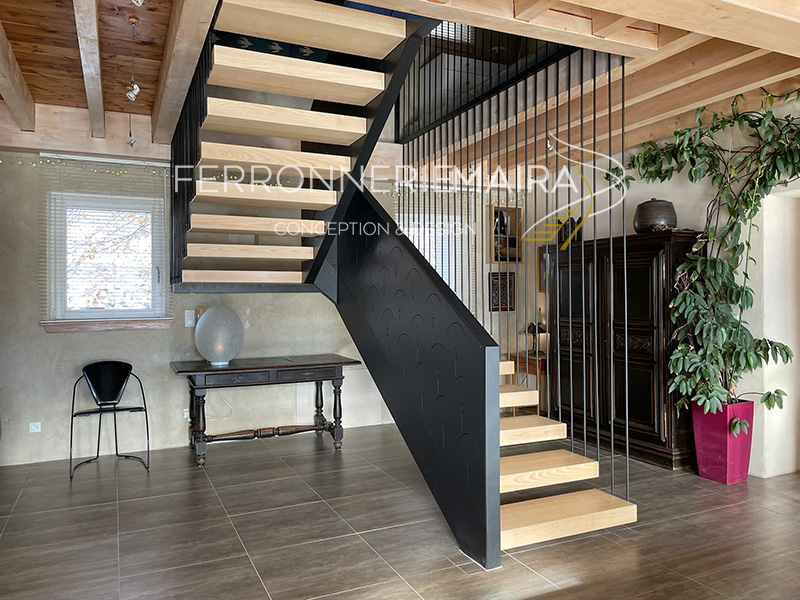 La Ferronnerie Maira est créateur d’escaliers sur mesure design et contemporain en Isère. Ainsi, mélangeant harmonieusement le bois, le métal, l’inox et le verre, nos escaliers métalliques sur-mesure à Bourgoin-Jallieu sauront vous séduire. En outre, de la conception à la fabrication, nous nous occupons de tout selon votre calendrier. De plus, nous disposons d’un showroom afin de vous conforter dans vos choix.